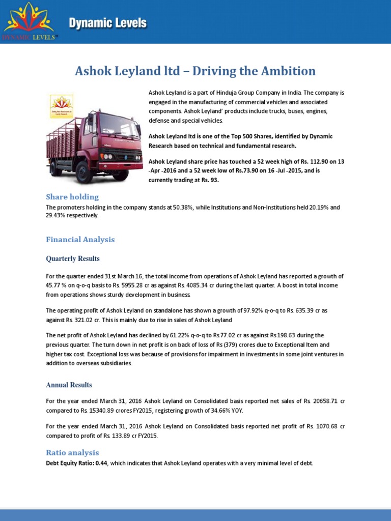 Ashok leyland announced another significant milestone by its subsidiary optare plc. Check out latest updates on ashok leyland ltd news, events, financial statements, intraday chart, share holding and a lot more on indiainfoline. You can find more details by going to one of the sections listed on this page such as historical data, charts. Ashok leyland stock price forecast, 500477 stock price prediction. Shares in ashok leyland are currently priced at ₹112.8.